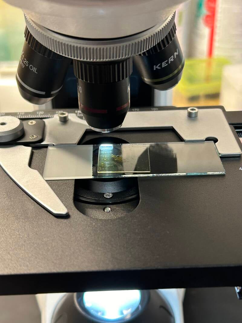 Kotuntersuchungen zur Bestimmung von Innenparasiten werden vor Ort am Labormikroskop durchgeführt um schnellstmöglich helfen zu können.