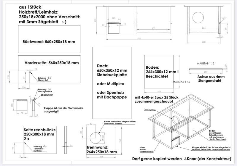 Futterhäuser benötigen 2 Eingänge (entweder seitlich oder vorne)