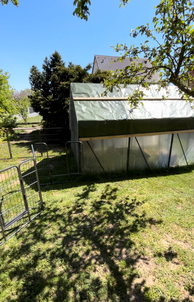 Projekt Freilauf, direkt an Opa Einzahn's Gehege angeschlossen, hat gestartet. NOCH schläft Opi, aber jetzt kann es ja nicht mehr lange dauern bis er wach wird....
