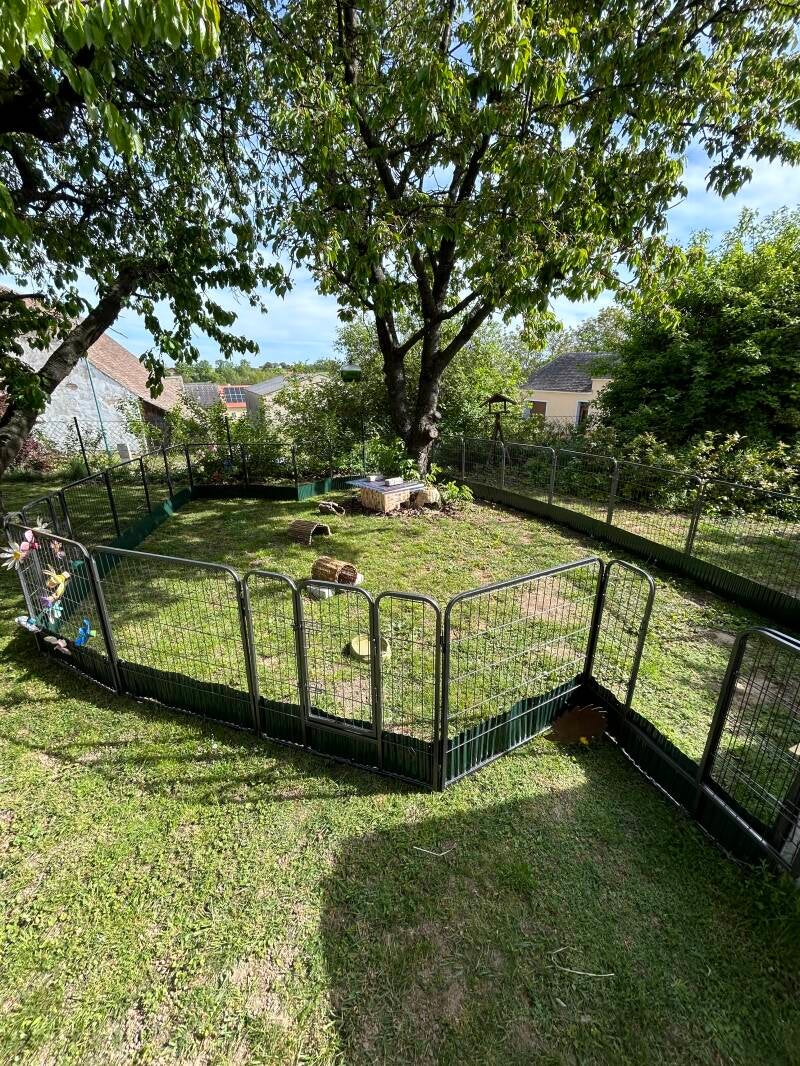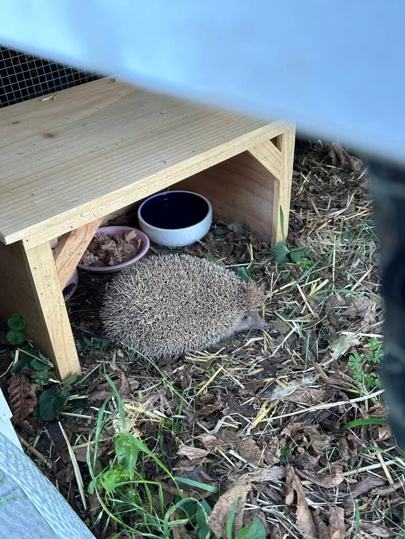 Maya, die trächtig hier einzog, hat nur wenige Tage nach der Aufnahme 6 gesunde Babys geboren. Mittlerweile wiegt das schwerste ihrer Kinder 182g. Damit die kleine Igelfamilie mehr Platz hat, habe ich direkt an das Gehege angeschlossen, einen großen Auslauf dazugebaut der auch schon fleißig erkundet wird.