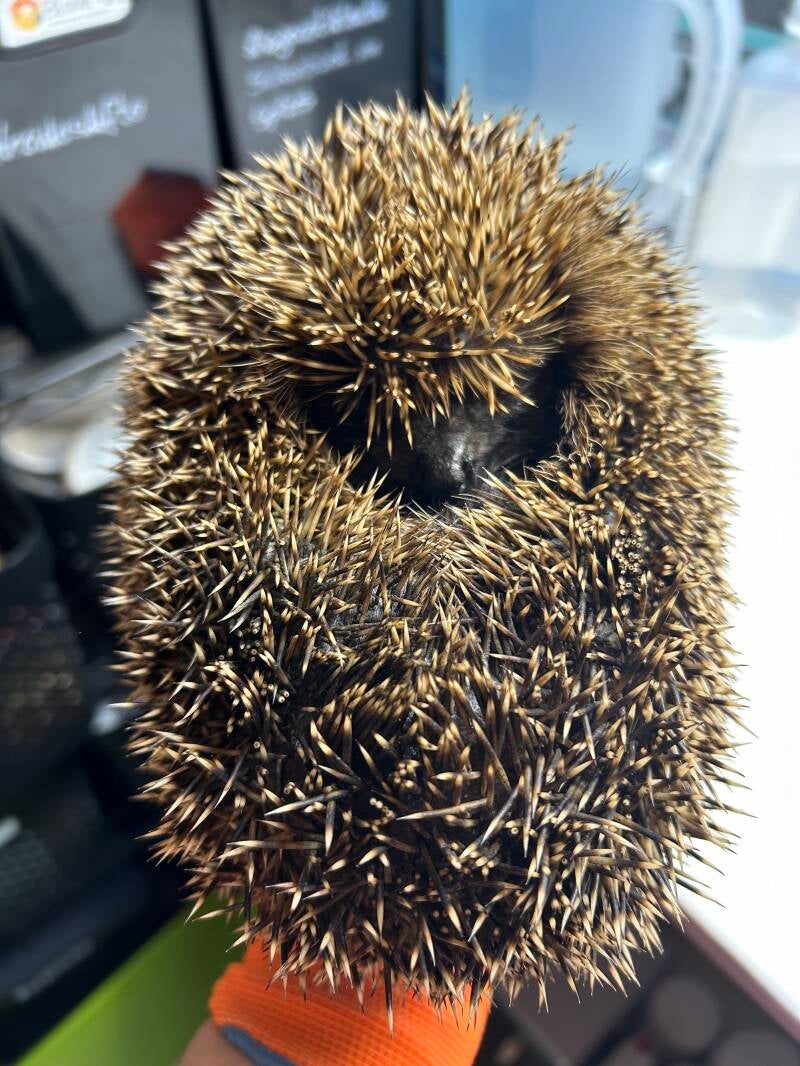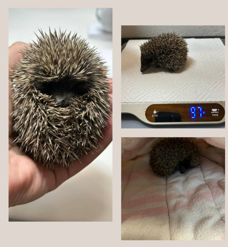 Nächster Notruf aus St. Andrä Wördern während der Autofahrt: Igelkind mit etwa 140g in schwachem Zustand, frisst und trinkt nicht…Zwischenstopp in Stockerau vereinbart… da wir etwa zeitgleich dort sein können…kommt auch mit….π€·βοΈ