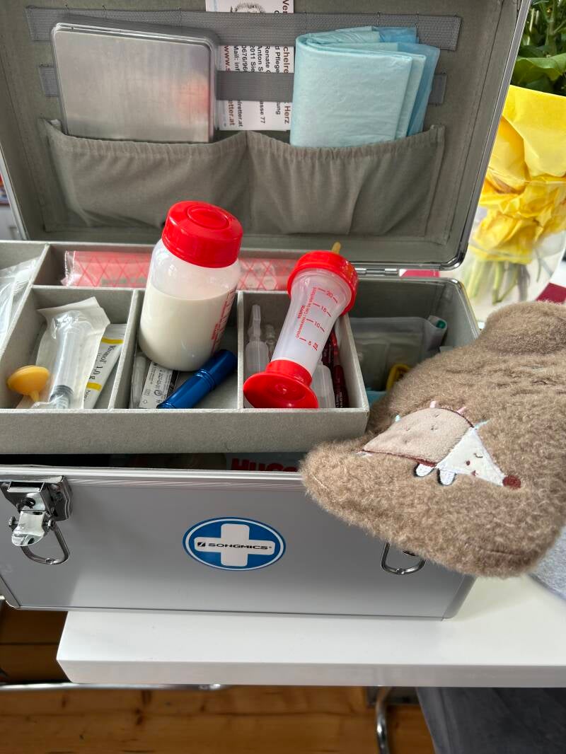 Das 100g Igelkind aus Melk wird unter meiner Anleitung vorerst bei der Finderin versorgt. Sollte es keine Probleme geben, wird es die Finderin großziehen und bei ihr im Garten wieder auswildern.