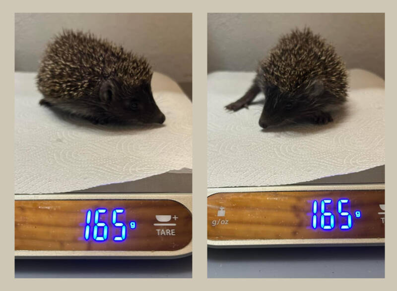 Sie sollte nicht mehr viel zunehmen…nur Gewicht halten. Sonst wird die Jungigelin zu dick π